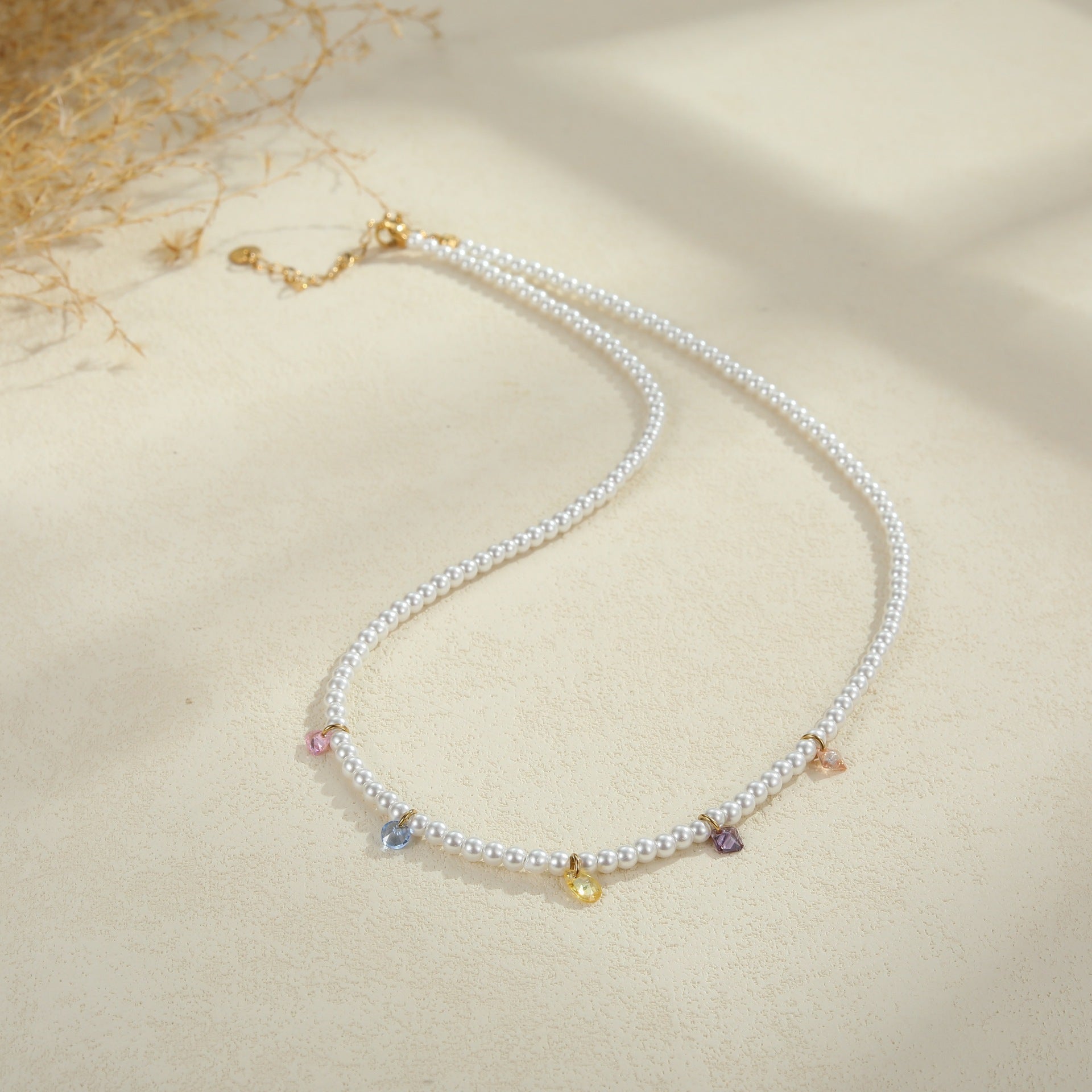 Crafted from high-quality stainless steel with 18K gold electroplating, this necklace and bracelet set showcases classic pearls paired with sleek geometric lines, creating the perfect blend of luxury and simplicity.